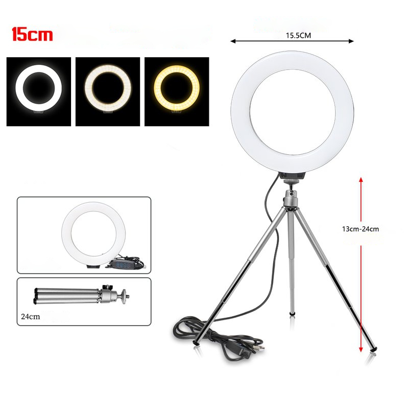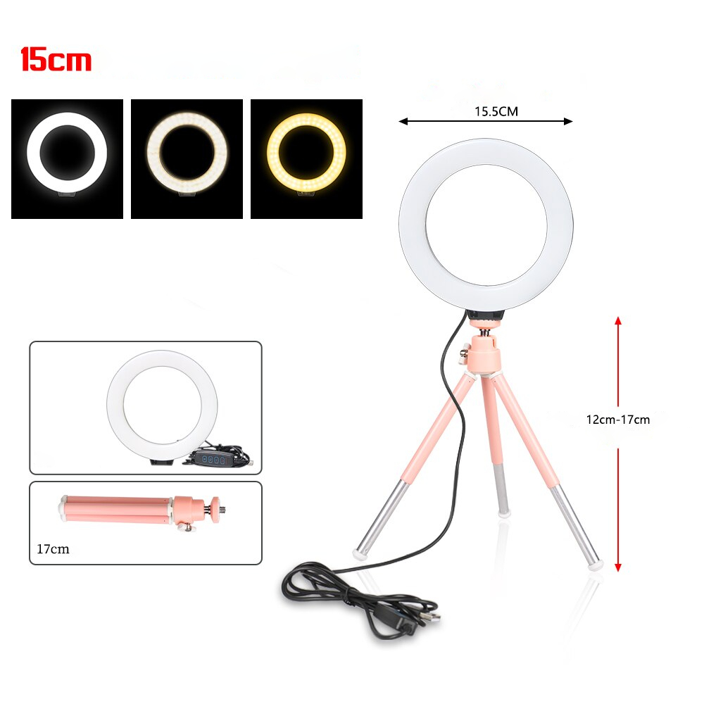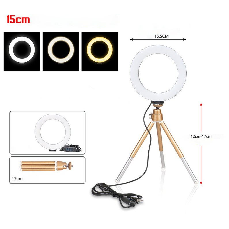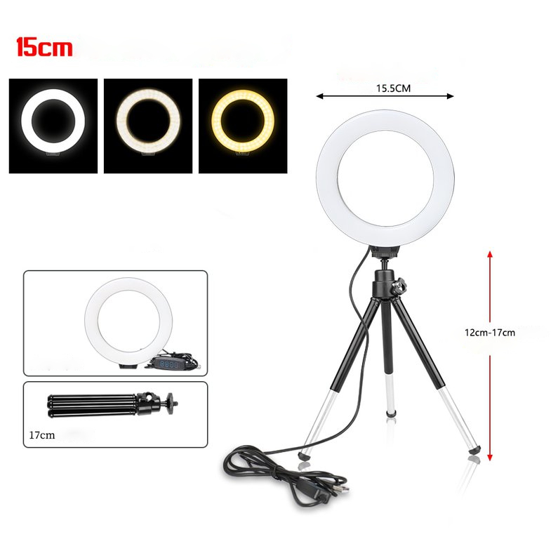 Anel de luz Youtuber de 16 cm e 6 polegadas com tripé de carga USB para selfies lâmpada led luz regulável para fotografia.