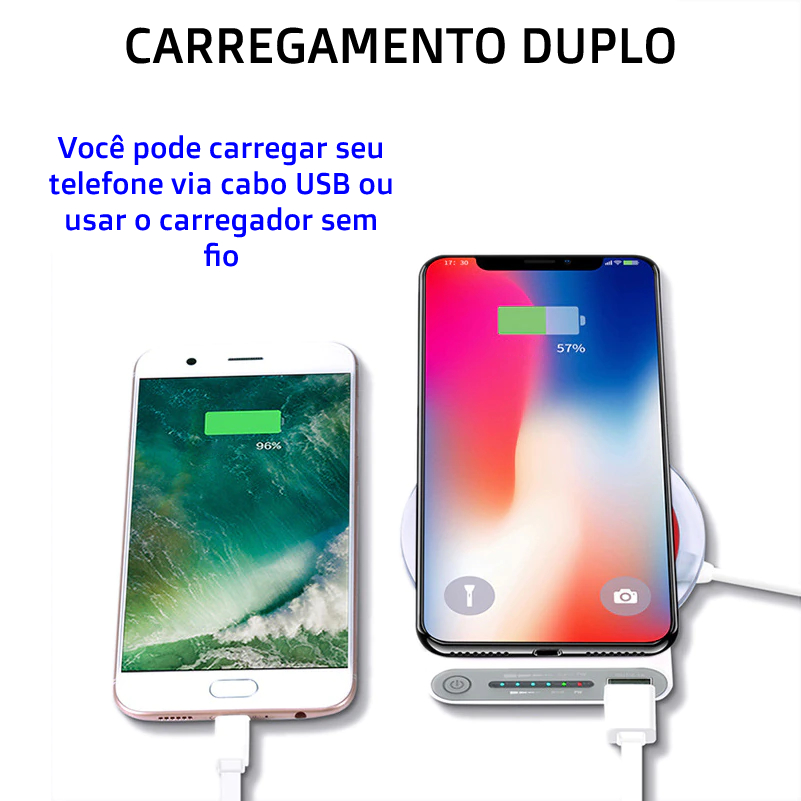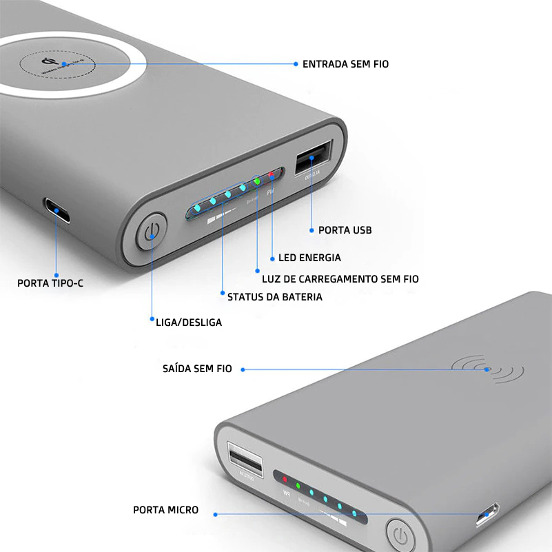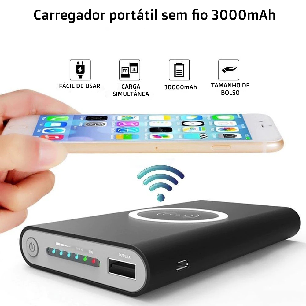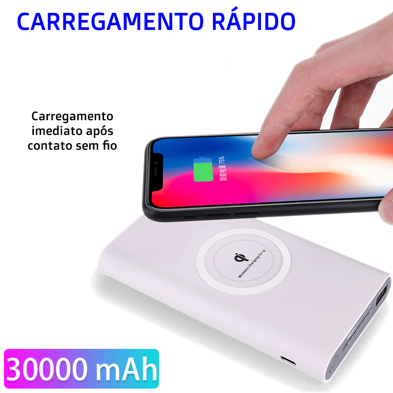Banco de bateria 30000mah portátil com e sem fio.