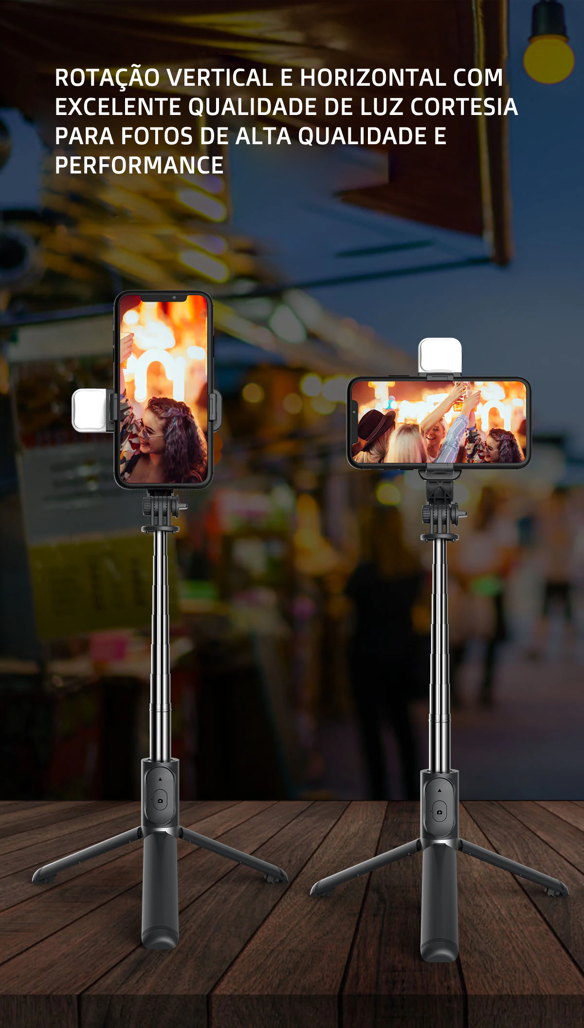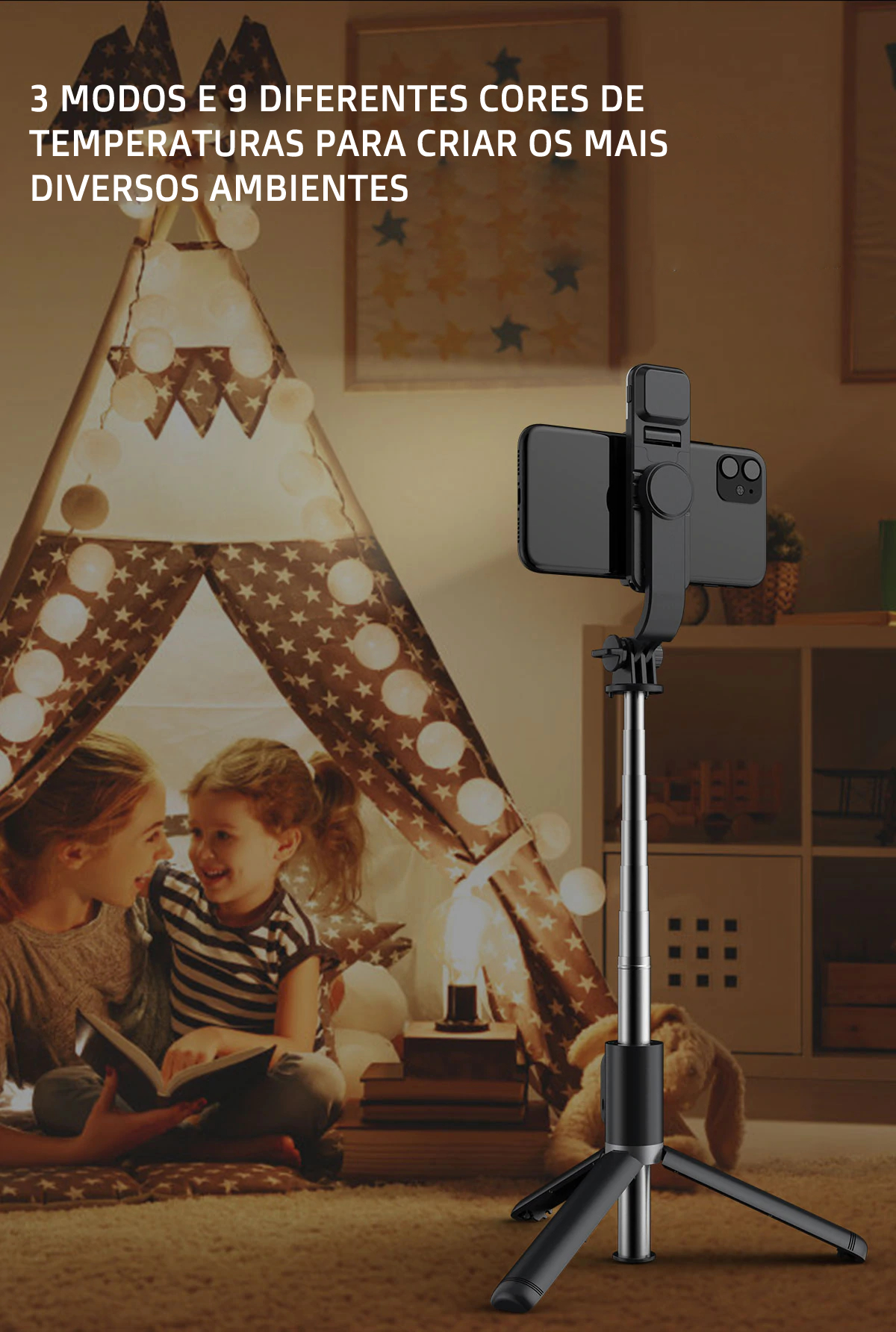 1x Bastão selfie modelo COM ILUMINAÇÃO.