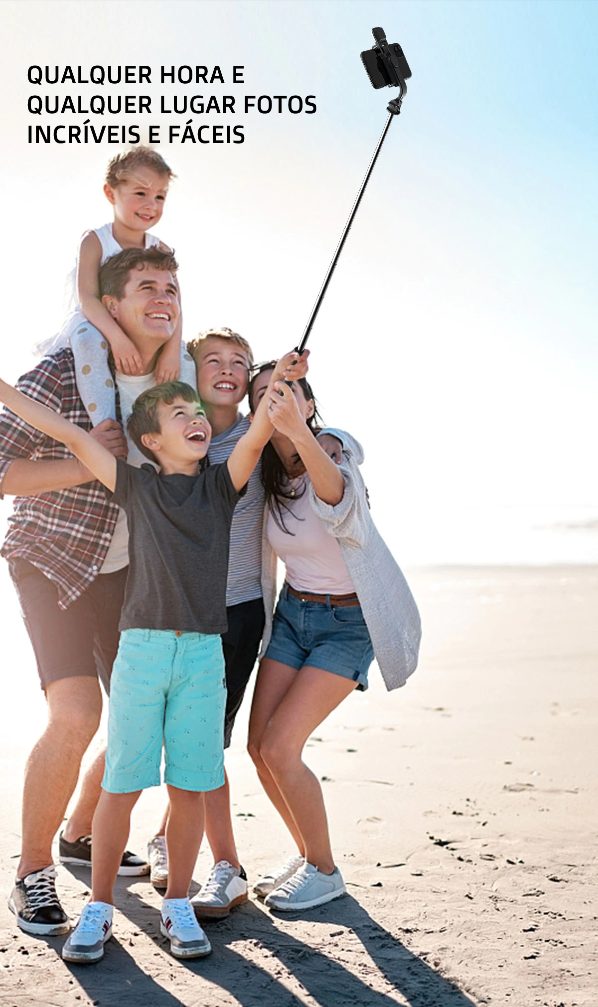 1x Bastão selfie modelo SEM LUZ ILUMINAÇÃO.