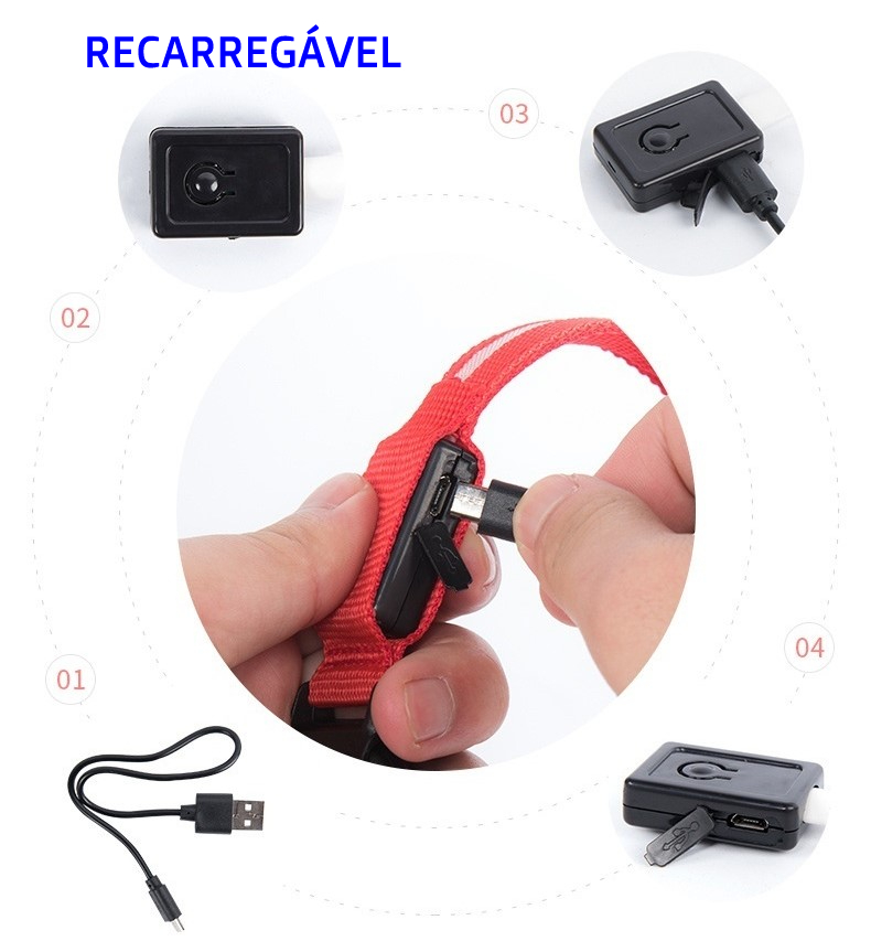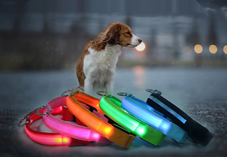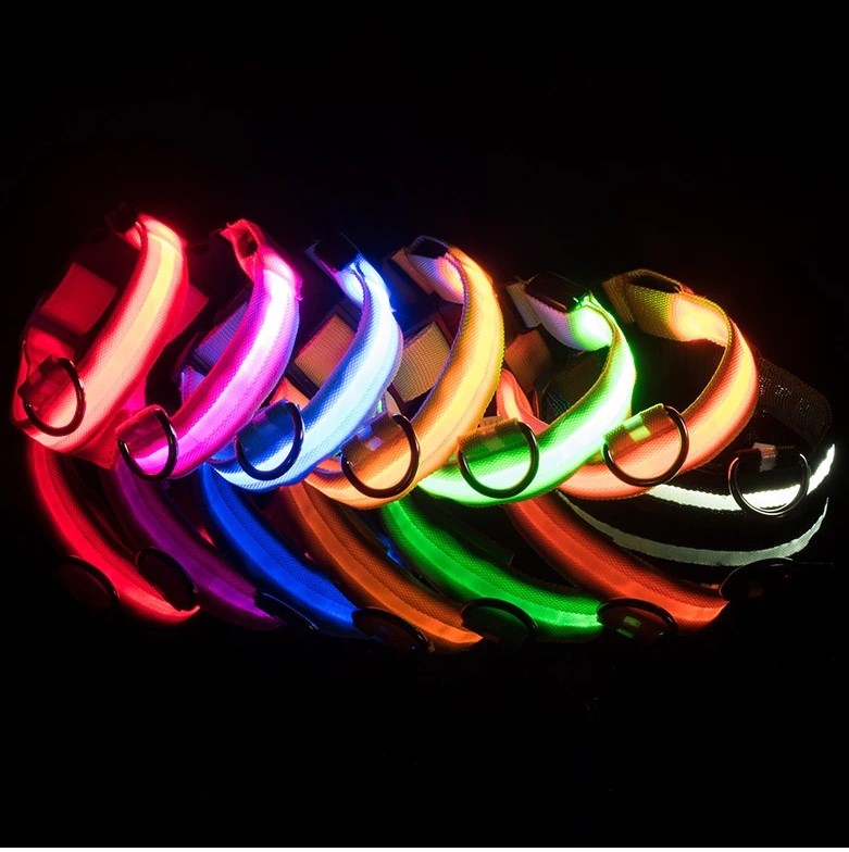Linda Coleira luminosa para PET em led, colar luminoso e recarregável via usb, para caminhada ao ar livre. Segurança para PETS perdidos e visibilidade noturna do seu PET para motoristas e ciclistas.