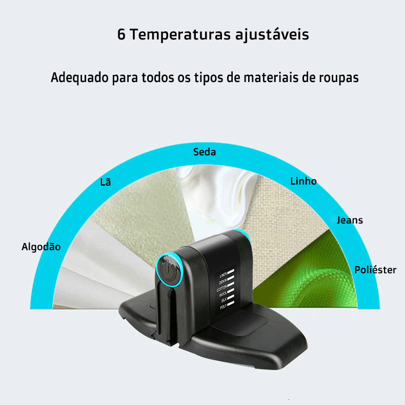 6 temperaturas ajustáveis para todos os tipos dos tecidos.