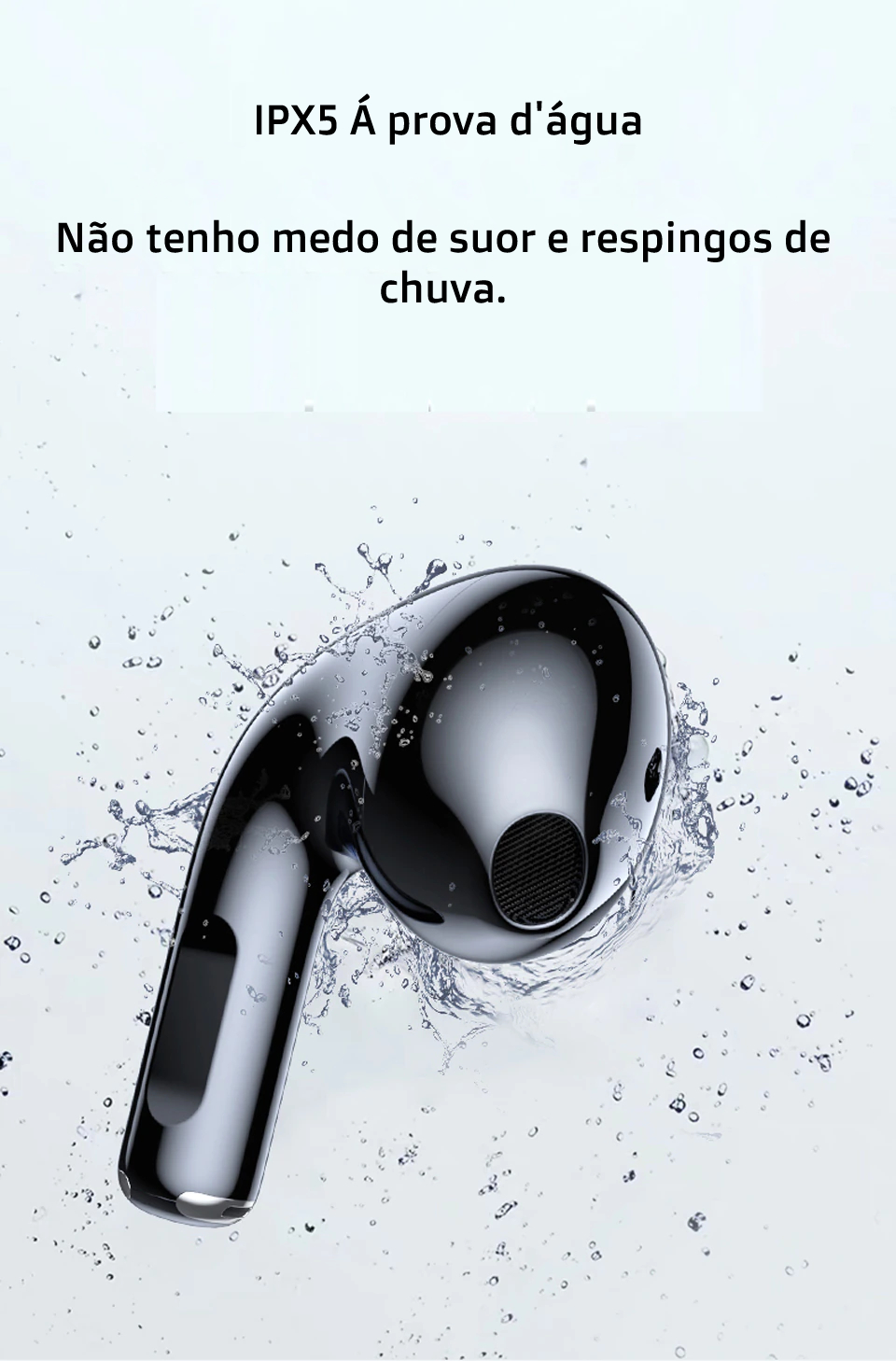 Resistente a água, suor e respingos, garantindo sua liberdade de uso em diferentes condições climáticas (recomendamos não submergir os fones, bem como não utilizá-lo em esportes náuticos e natação).