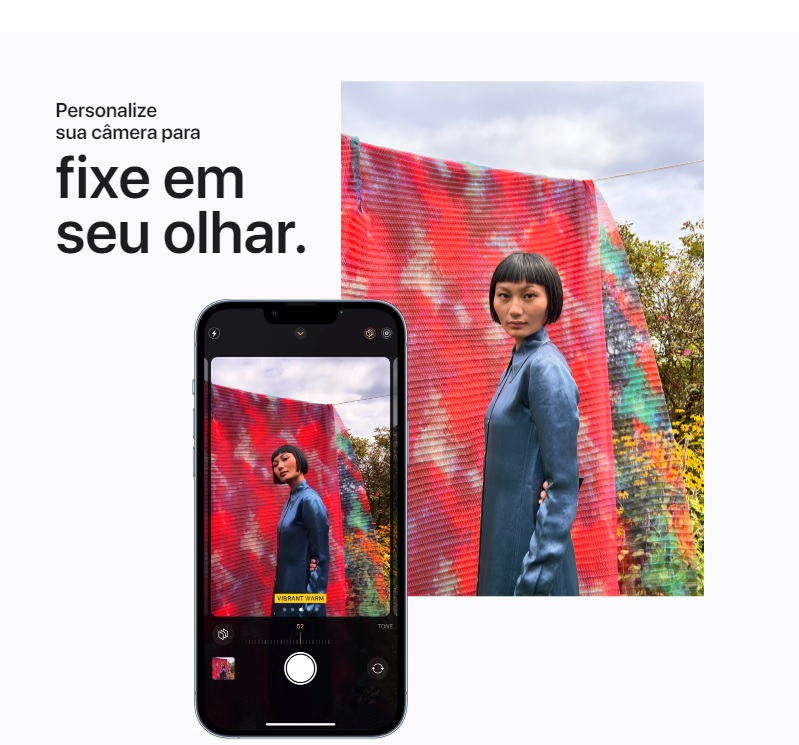 Câmera de 12 megapixel que permite ao Apple iPhone 13 tirar fotos de boa qualidade com uma resolução de 4000x3000 pixel e gravar vídeos em 4K a espantosa resolução de 3840x2160 pixels. A espessura de 7.7mm torna o Apple iPhone 13 um dos telefones mais completos e finos da marca.