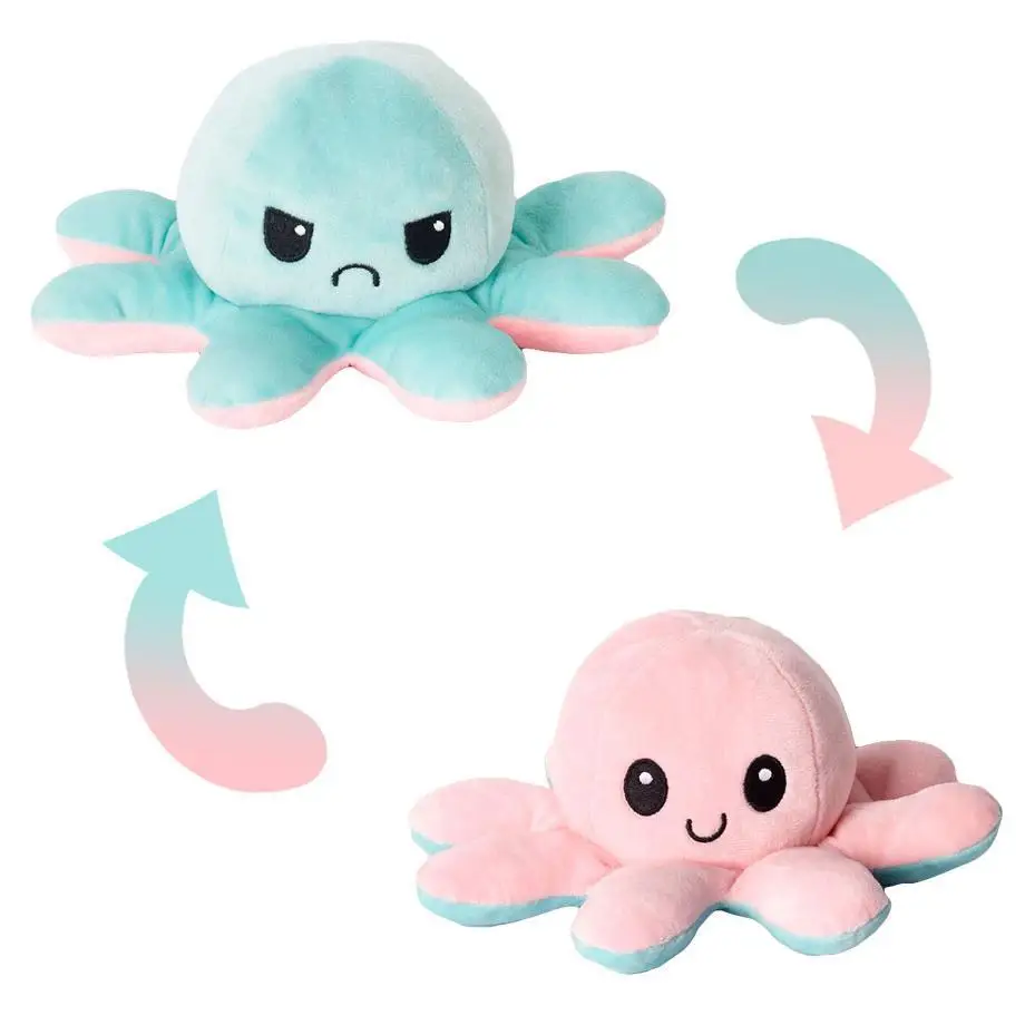 2.O design exclusivo flipflop fornece a você diferentes experiências visuais e sensoriais. Este lindo polvo de pelúcia adota um design único de duas cores, frente e verso, que pode ser facilmente transformado em diferentes cores e expressões.