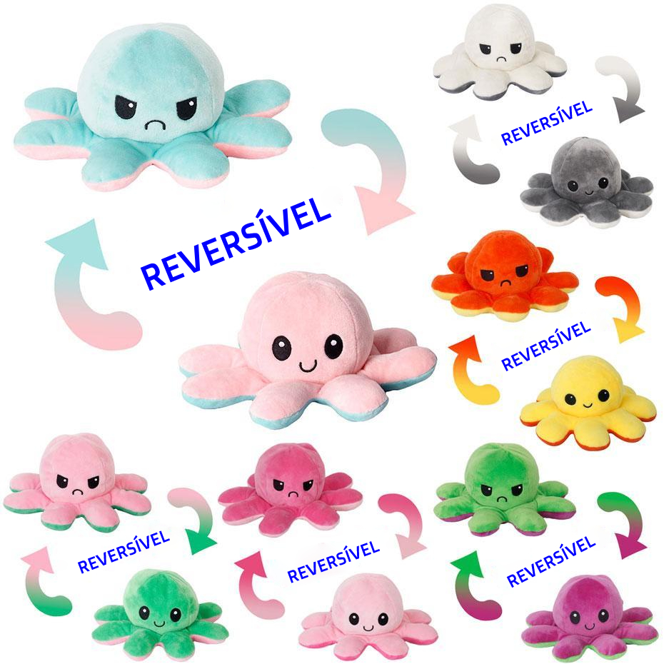 Polvo de pelúcia super macio com expressões é perfeito para brincar, colecionar e acariciar. Essas pelúcias são os presentes perfeitos para aniversários, chás de bebê e dia dos namorados.