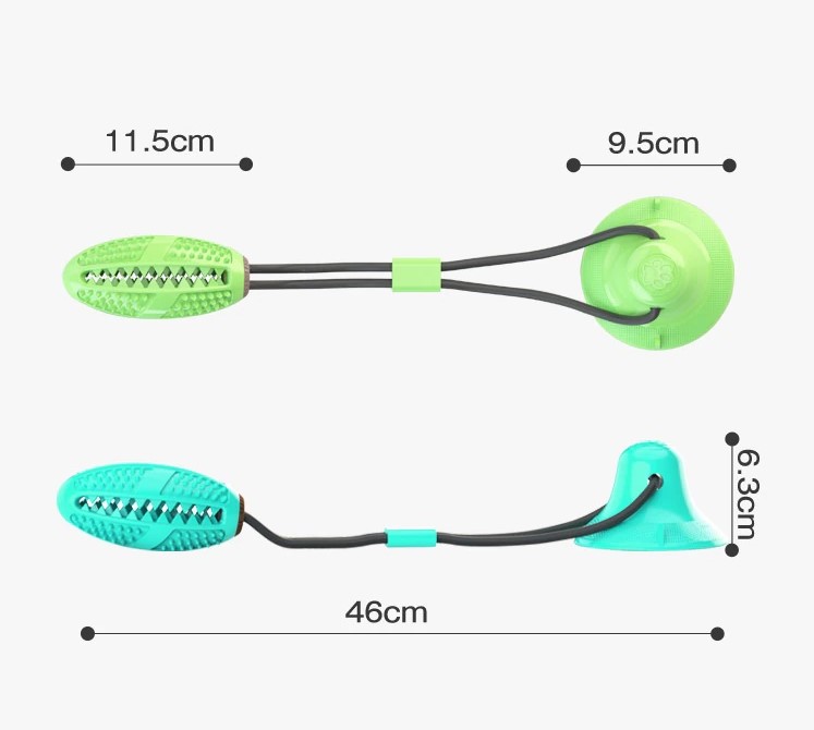 As ventosas funcionam perfeitamente em azulejos, vidro e outras superfícies lisas com forte sucção. Ele pode ficar firme no chão, não importa como o cão o puxe. Brinquedo de corda perfeito para cães de raças pequenas e grandes
