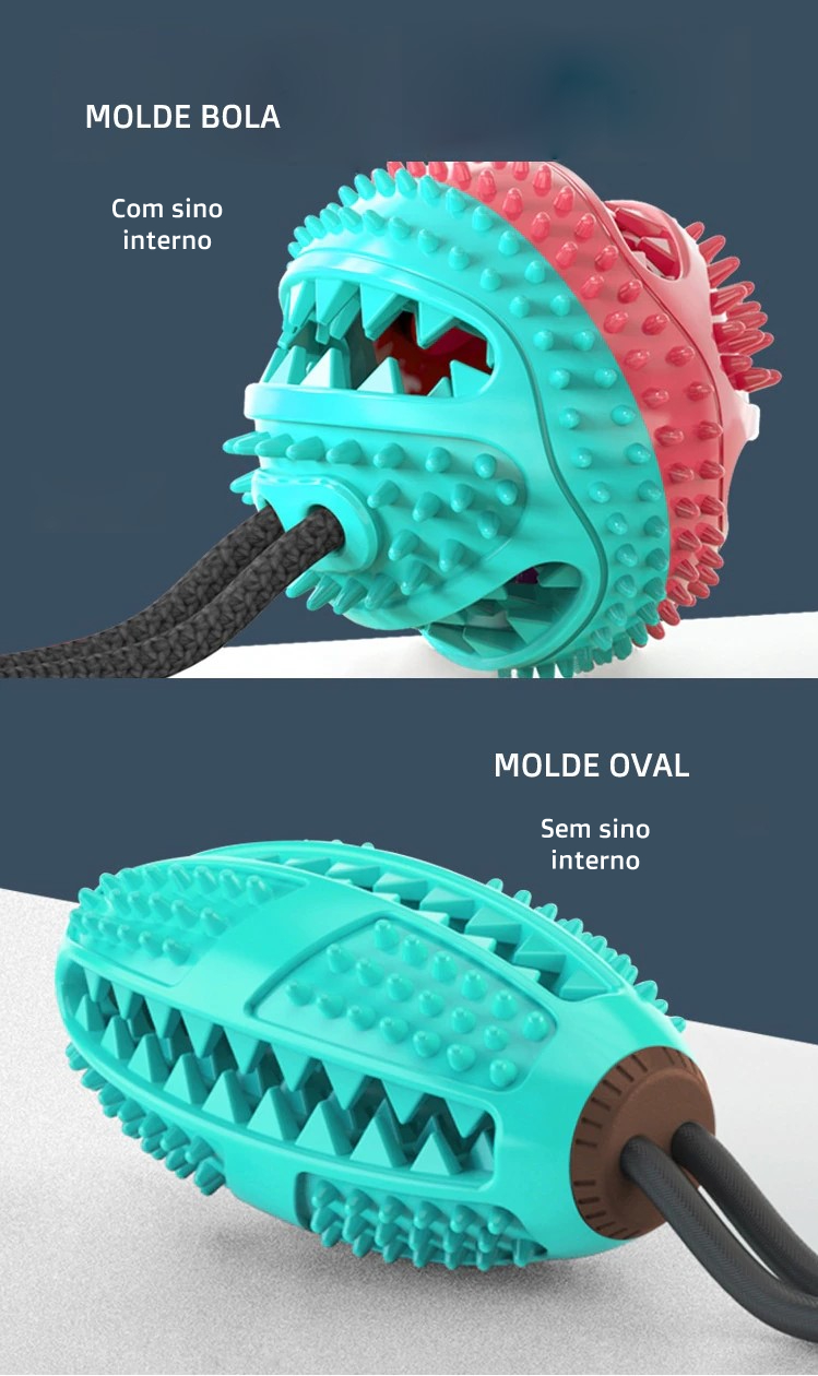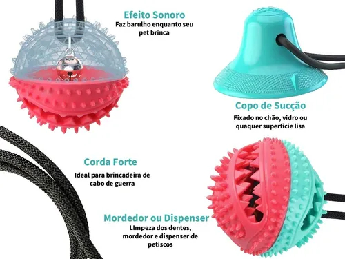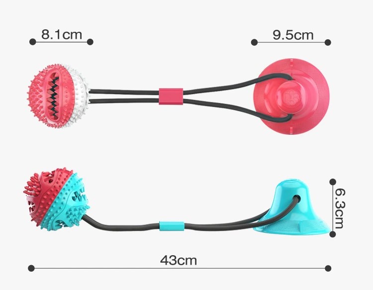 Brinquedo puxador de ventosa de cachorro não só pode trazer alegria para seu animal de estimação, além disso, esta também é uma boa ferramenta de limpeza bucal, você pode colocar a comida e petiscos na bola, então os cães tentarão o seu melhor para comer a comida, quando o cão mordê-lo, o serrilhado dentro limpar os resíduos de comida nos dentes.